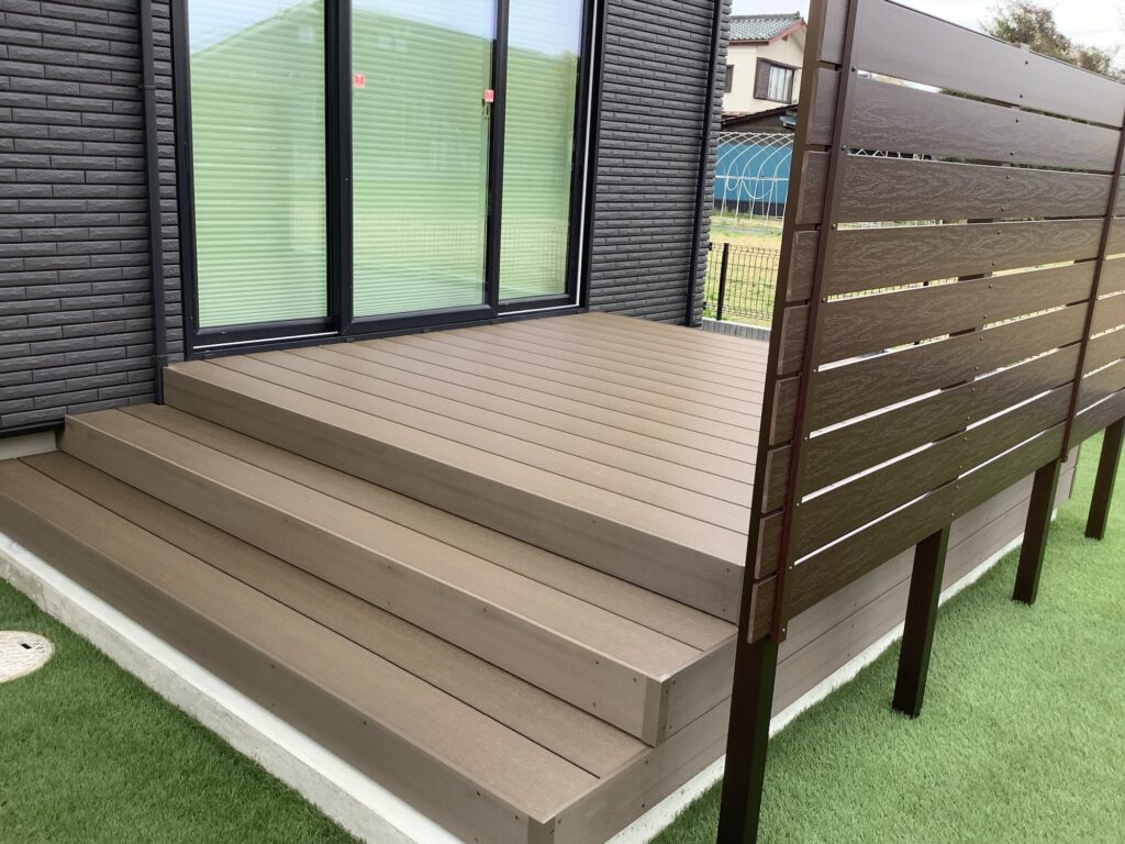 ウッドデッキと目隠しフェンスの設置工事完了しました。